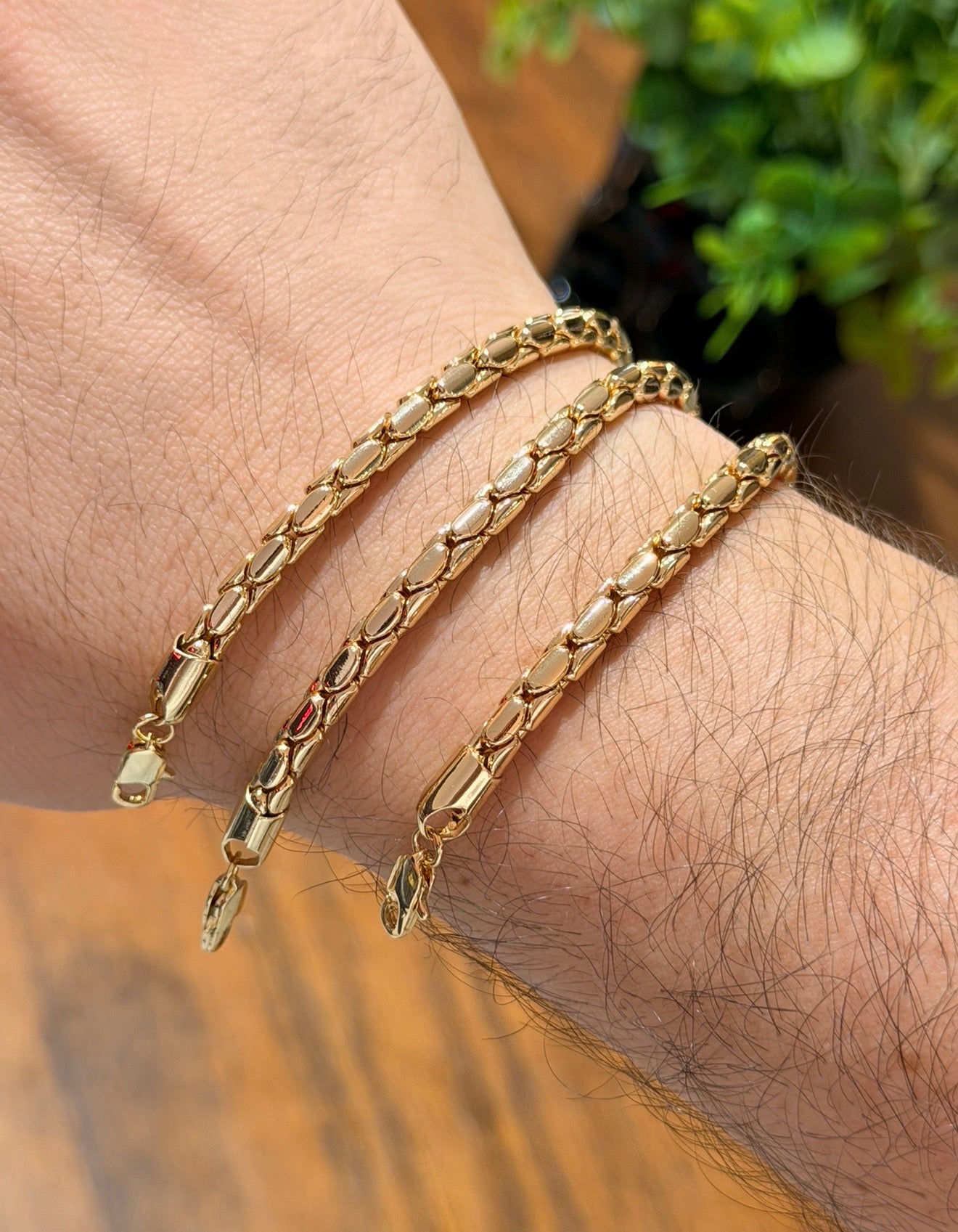 Este producto es Laminado en 18k, Es un material con bastante resistencia al uso diario. El tono de este es muy similar al oro.