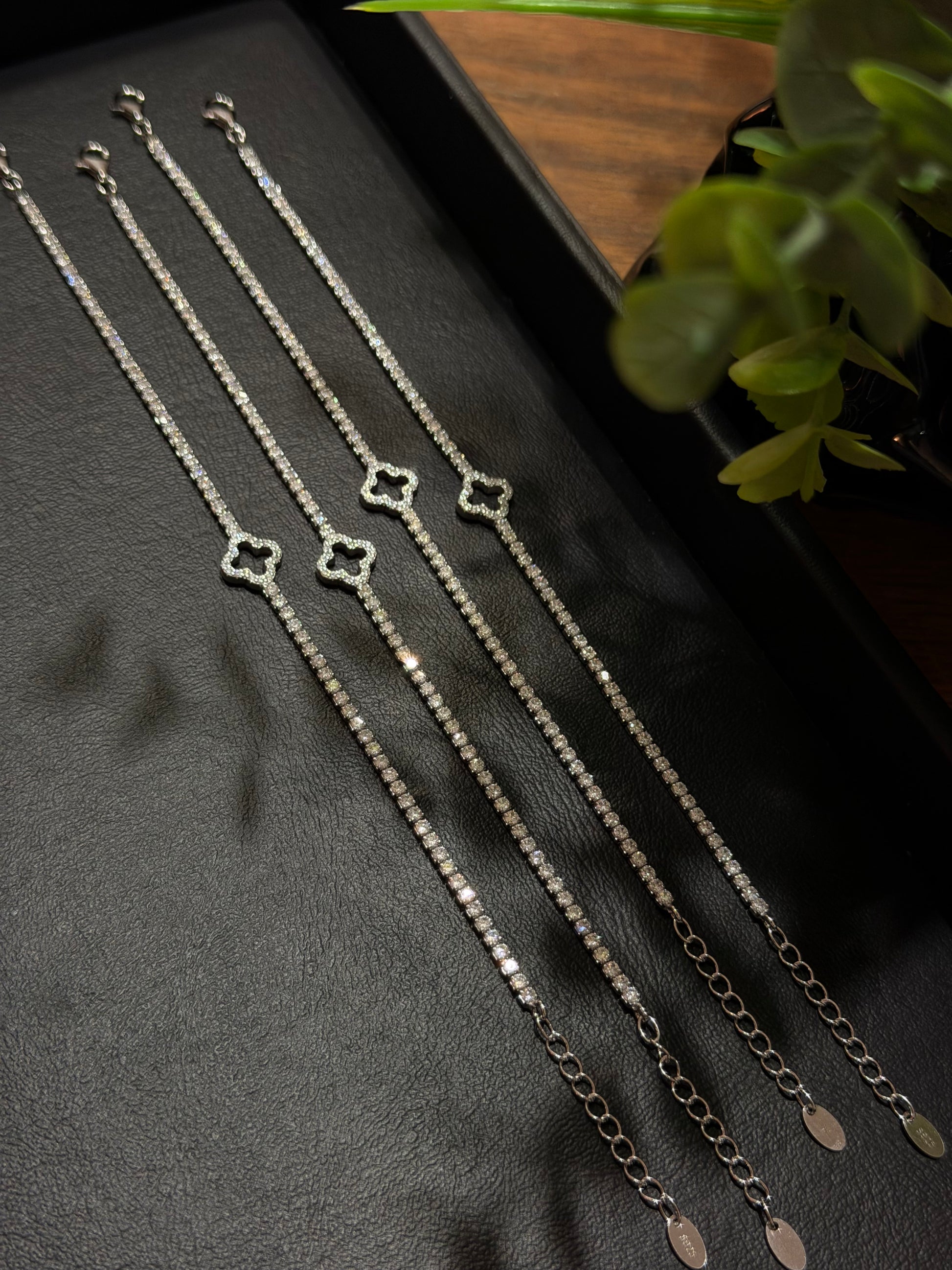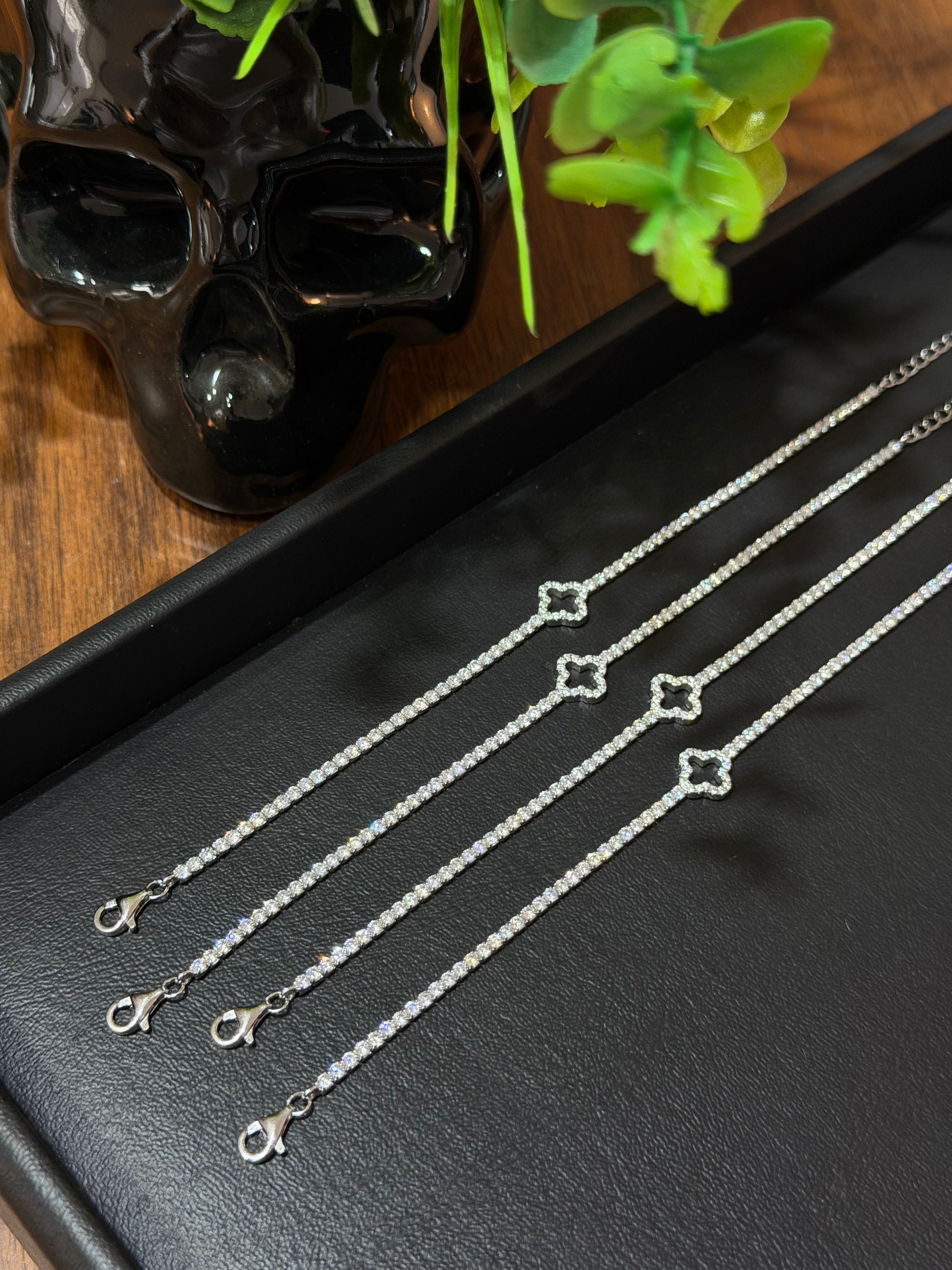 Pulsos Tennis Trébol Plata .925 (Ajustables)