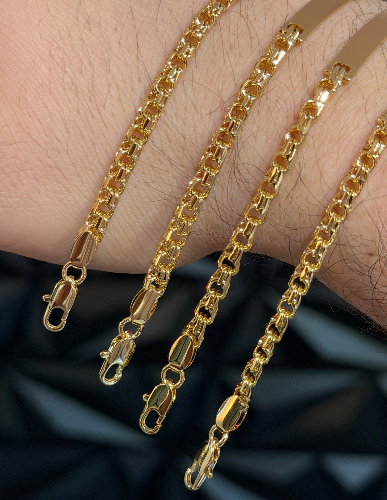 Este producto es Laminado en 18k, Es un material con bastante resistencia al uso diario. El tono de este es muy similar al oro.